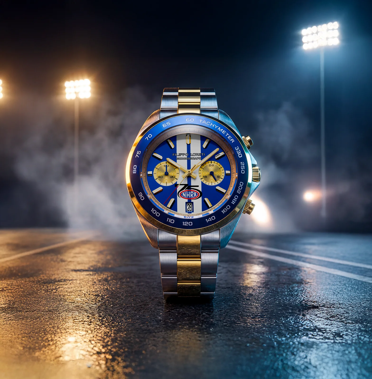 Overall, the Filippo Loreti National Hotrod Association’s (NHRA) 75th Anniversary watch offers strong value for those seeking a distinctive, sport-driven timepiece without stepping into high-end luxury pricing. With confidence, this model of watch will inspire future engineering of NHRA timepieces.